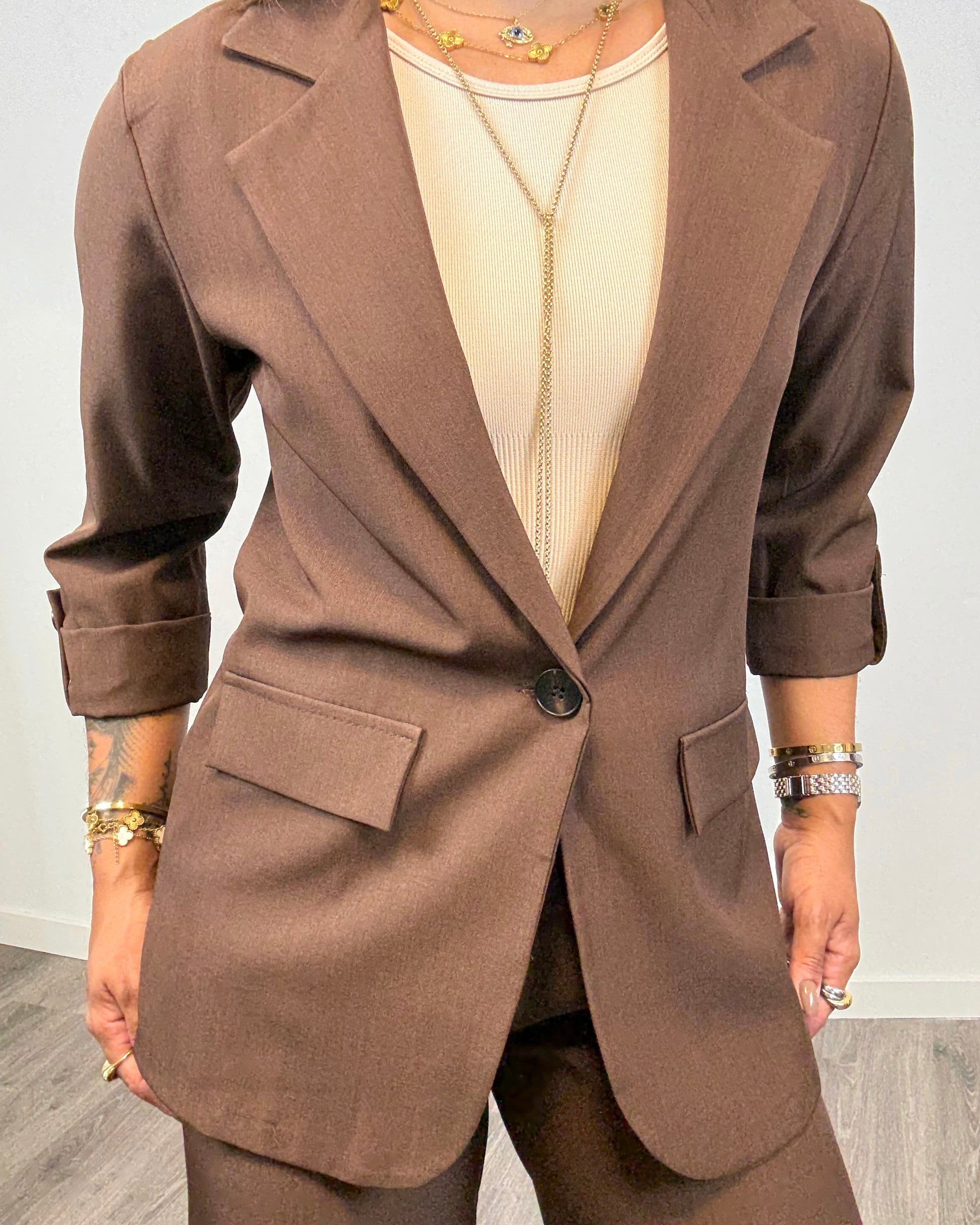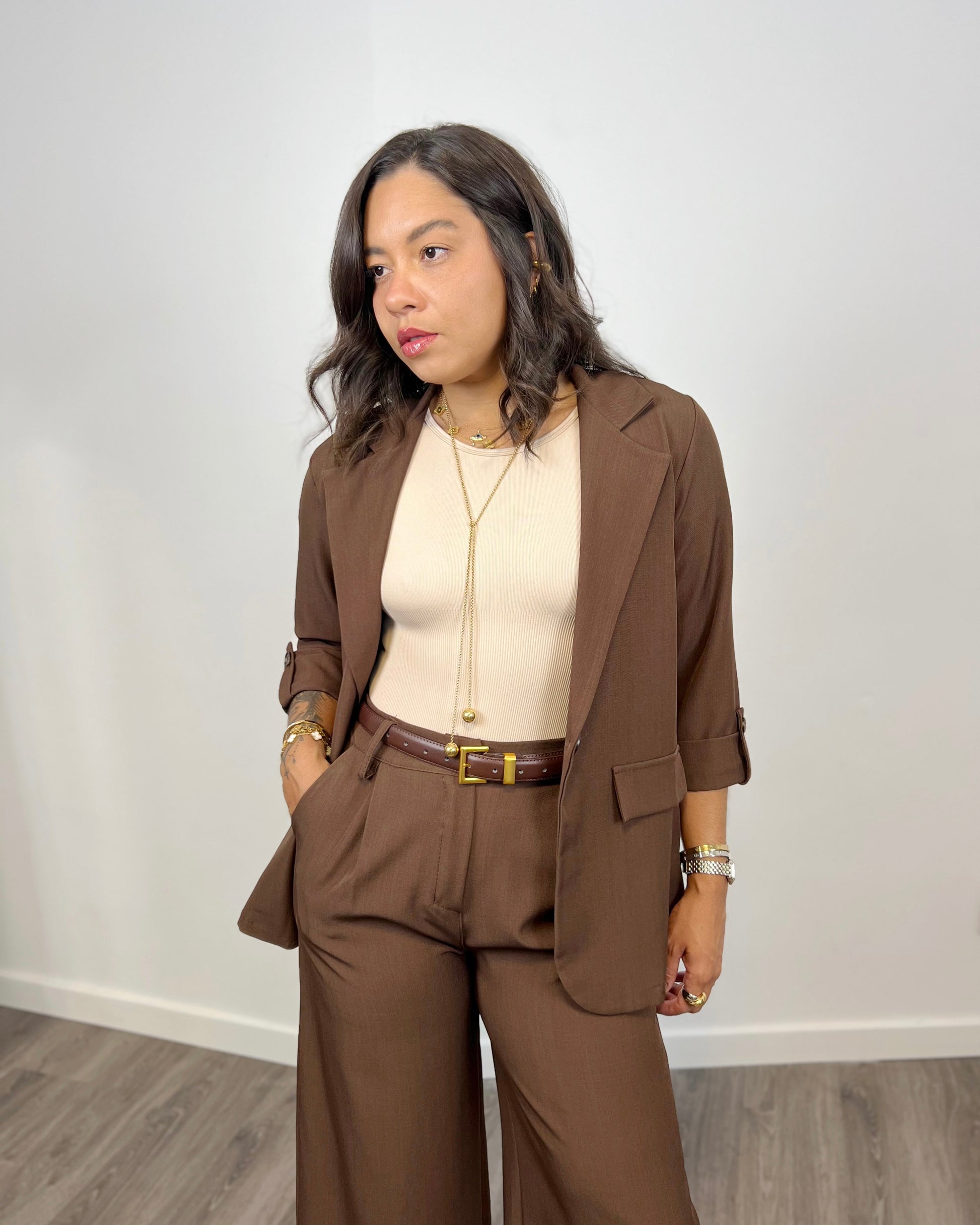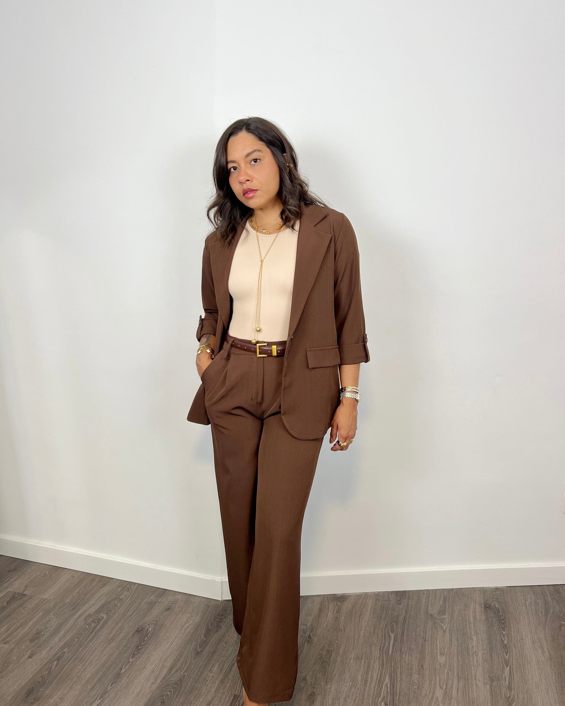 La Americana Fénix Marrón es un básico versátil y elegante para cualquier ocasión. Con su estilo sobrio y atemporal, te asegura un look sofisticado tanto para situaciones casuales como formales. Un imprescindible en tu guardarropa.
