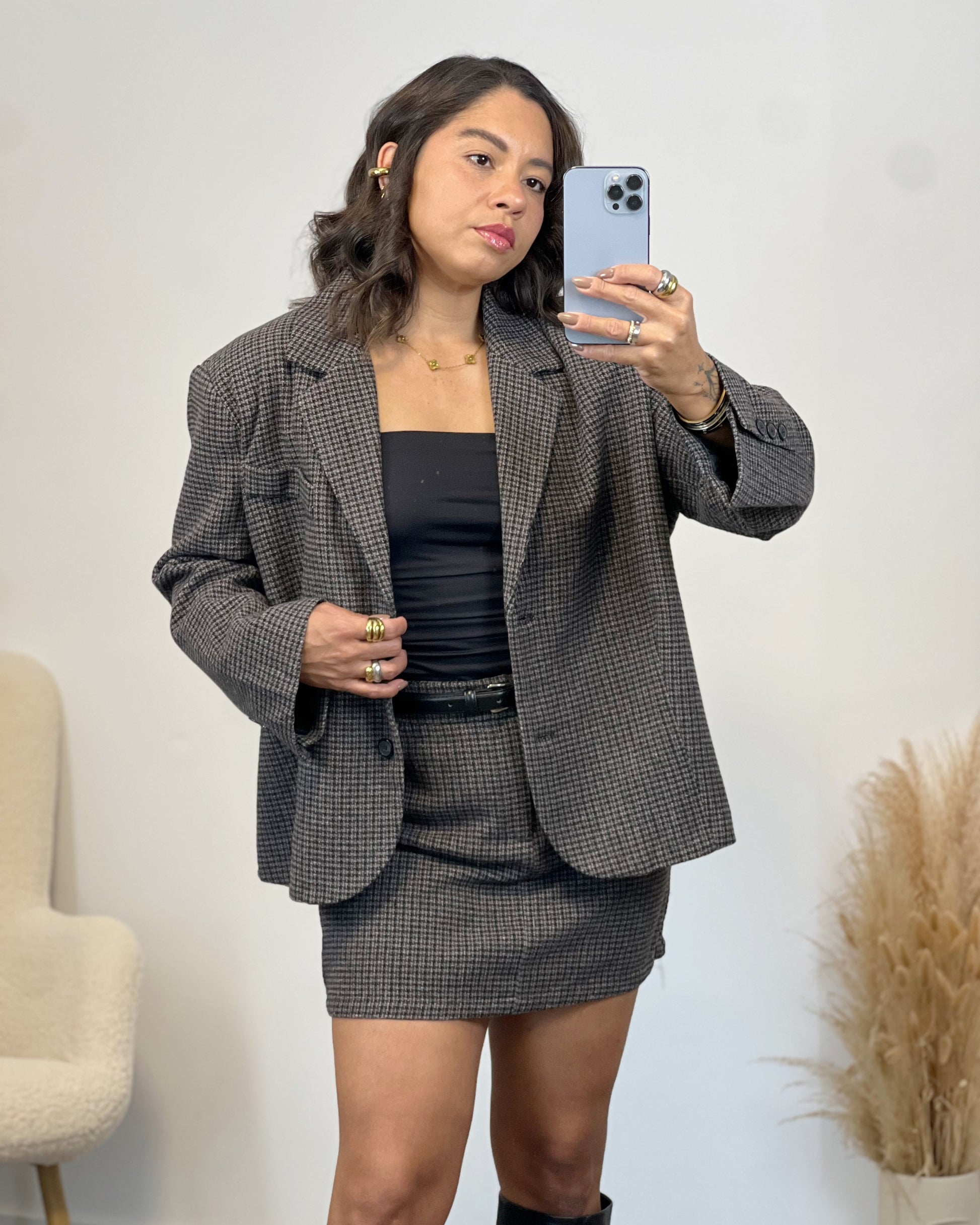 Este blazer cuadros gris es la combinación perfecta de estilo y comodidad. Su diseño oversize le da un toque moderno y elegante, mientras que su tela de alta calidad te mantendrá abrigado y cómodo todo el día. Ideal para lucir a la moda en cualquier ocasión.