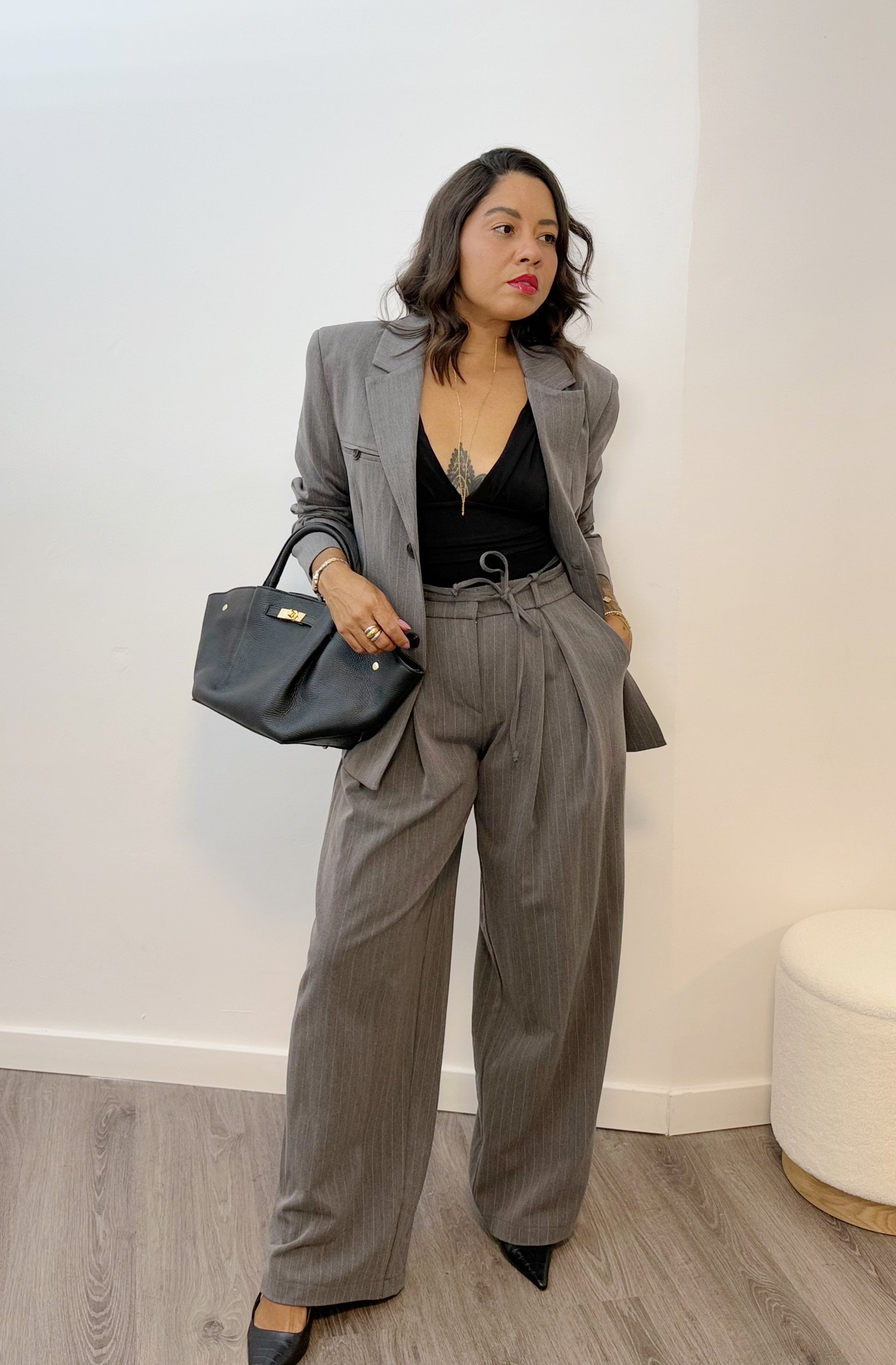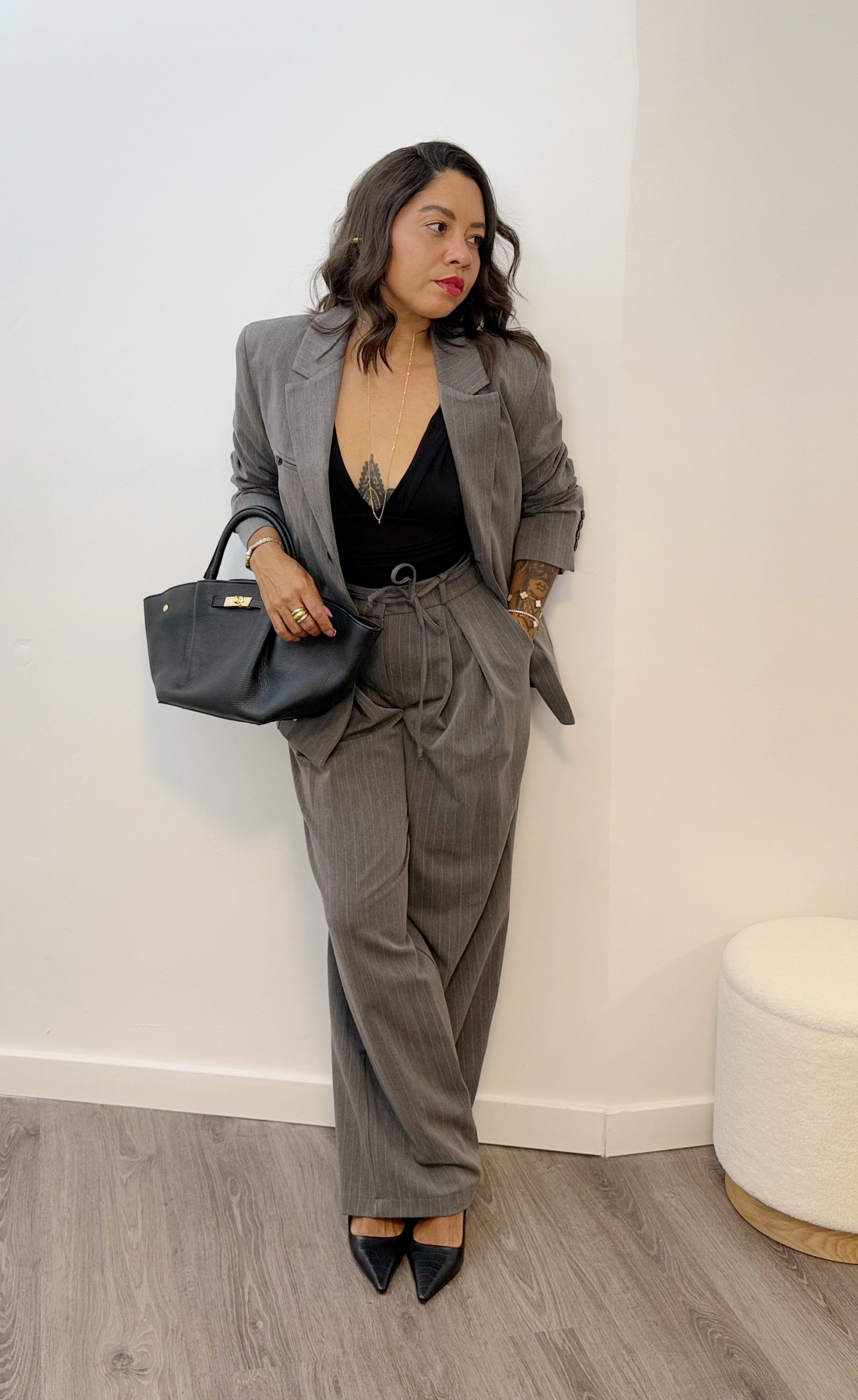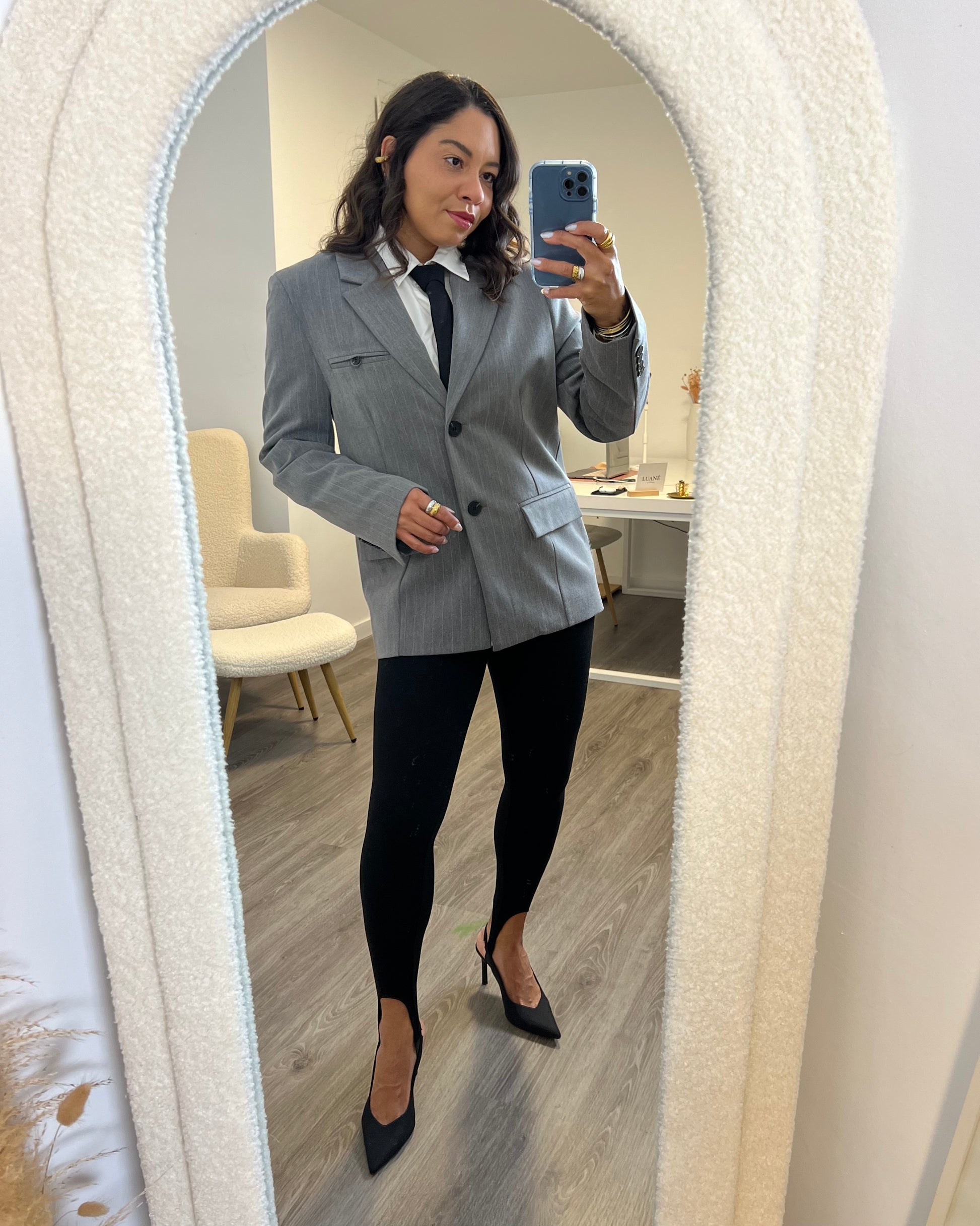 Este blazer gris con raya diplomática añade un toque sofisticado y divertido a tu armario. Perfecto para jugar con estilos formales e informales, su diseño clásico se combina con un aire moderno que te hará destacar sin esfuerzo. Ideal para cualquier ocasión en la que quieras sentirte elegante y con un toque de personalidad.