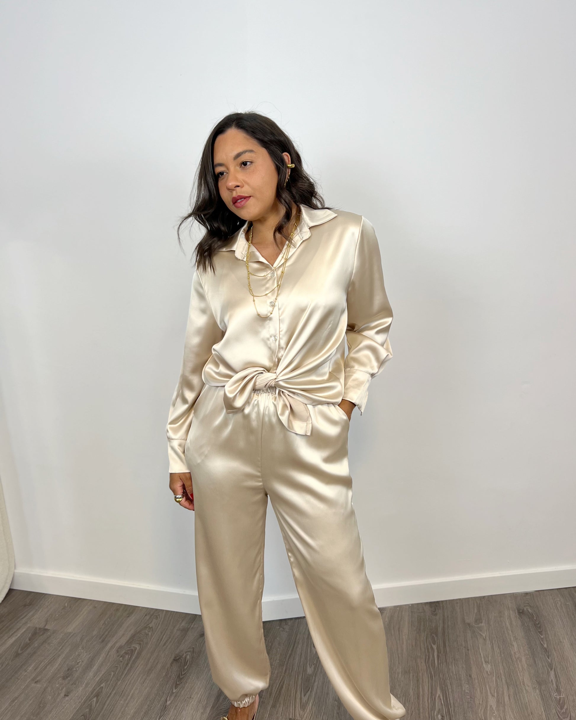 La Blusa Paris beige es una prenda elegante, confeccionada en un suave tejido satinado que la hace ideal para ocasiones especiales. Con su diseño refinado y sofisticado, esta blusa aportará un toque de estilo y elegancia a cualquier outfit. ¡Descubre la belleza y la suavidad del tejido satinado con la Blusa Paris beige!