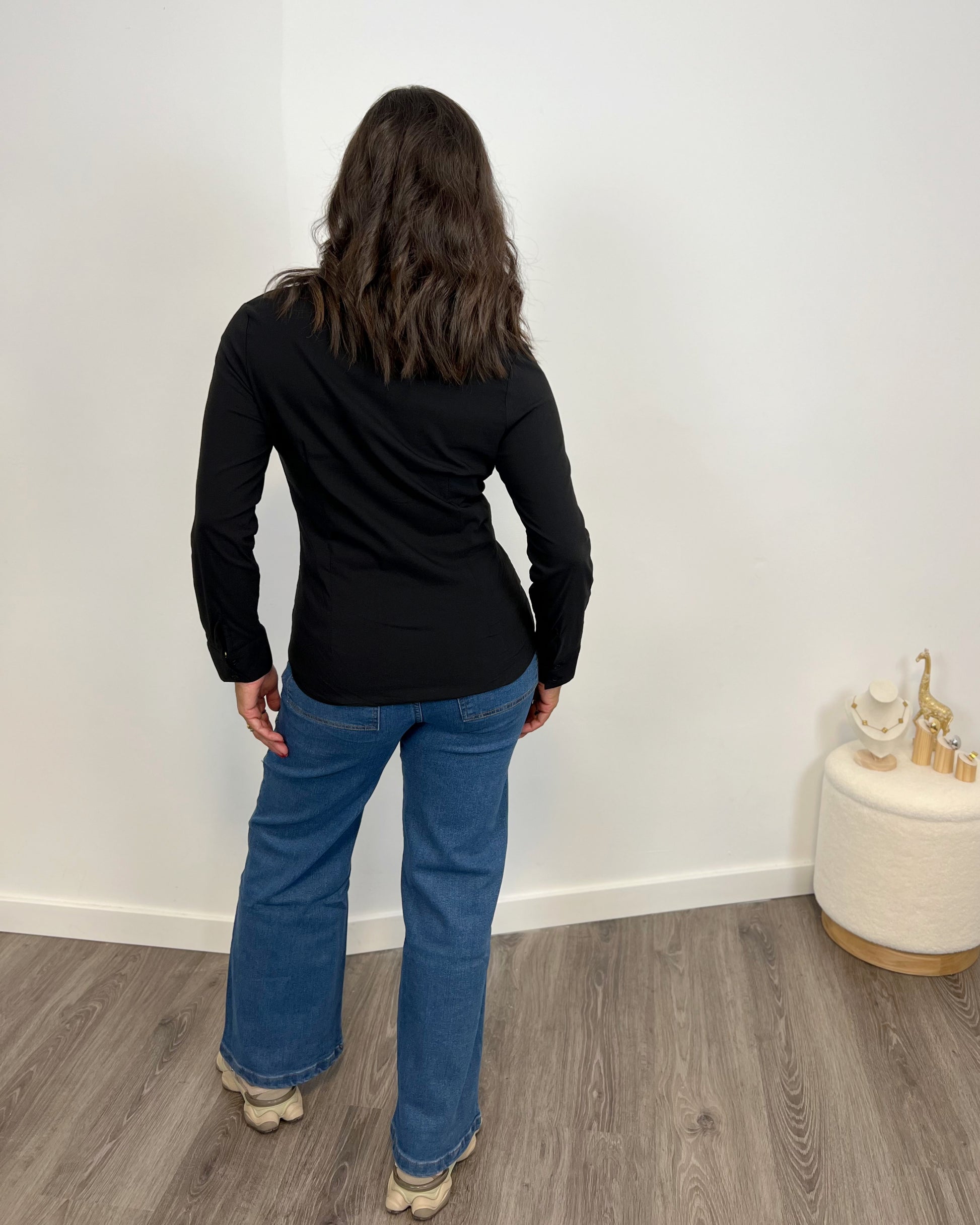 Introduce un toque de sofisticación a tus looks casuales y elegantes con nuestra camisa básica negra. Hecha con un tejido elástico, te brinda comodidad y versatilidad en cualquier ocasión. ¡Descubre cómo llevarla a tu estilo único!