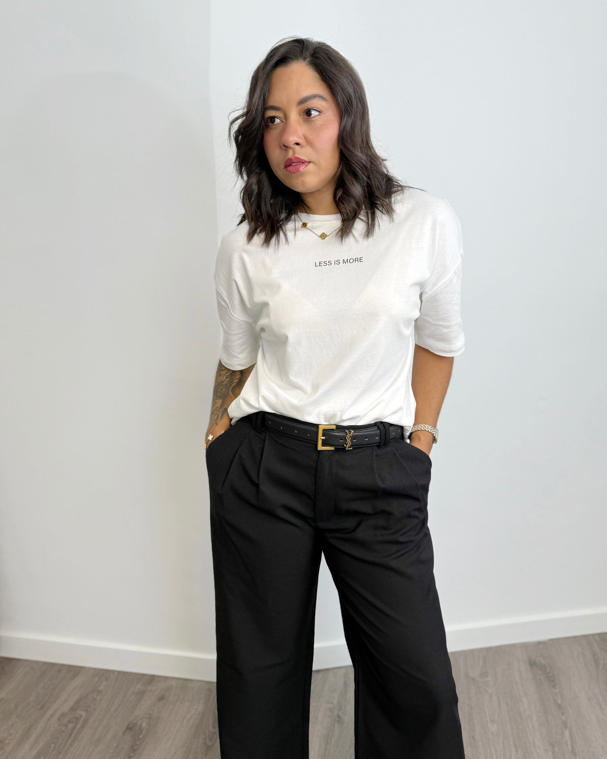 Esta camiseta "Menos es más" es ideal para aquellos que buscan un estilo minimalista elegante. Combina perfectamente con cualquier outfit y su diseño sencillo te permite lucir sofisticado sin esfuerzo. ¡Con ella, menos es realmente más!