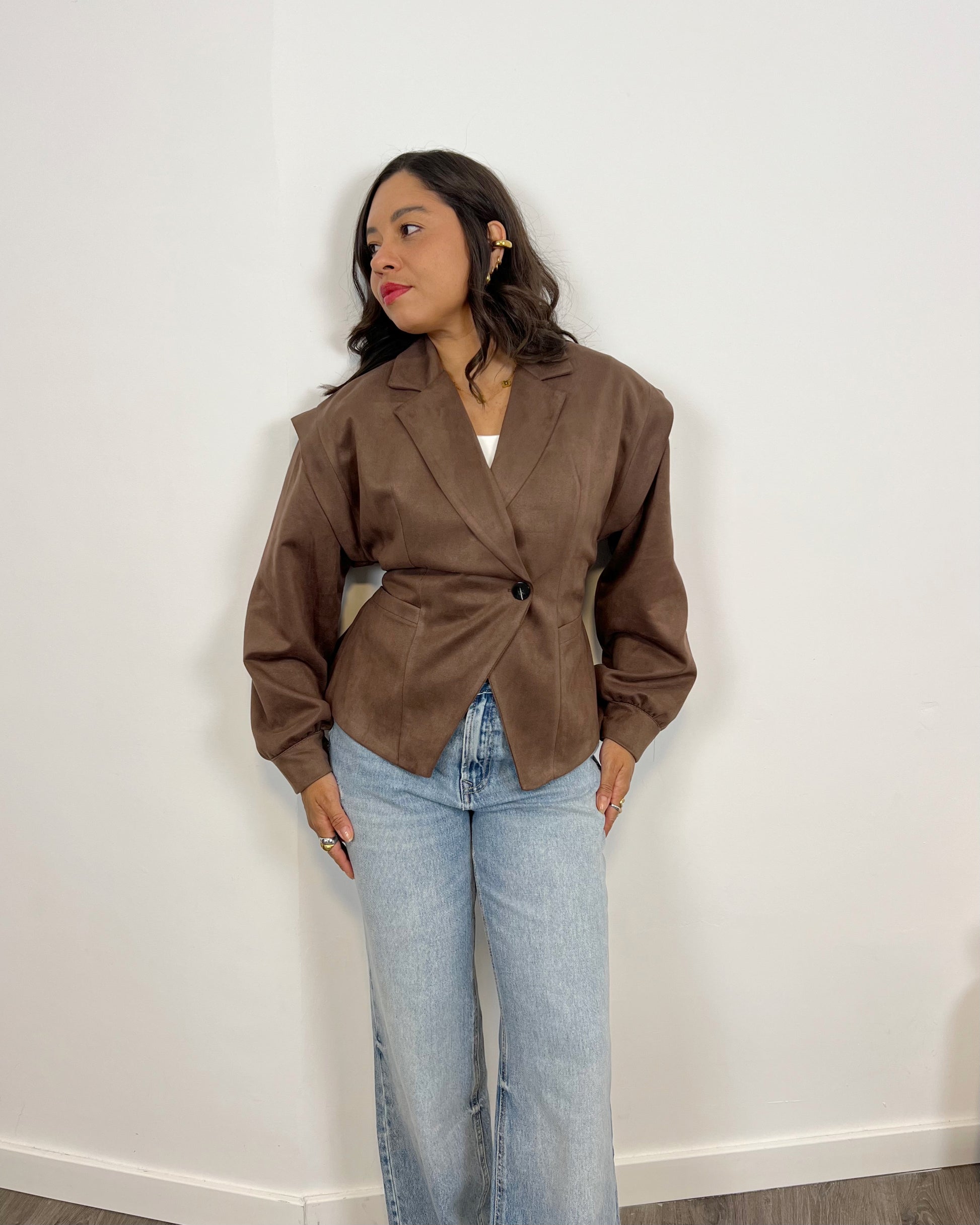 Descubre la versatilidad de nuestra chaqueta Cool con tejido efecto ante y lazada en la espalda. Estila la cintura y se adapta a varios estilos, perfecta para combinar con el look cawboy. ¡Elegancia y comodidad en una sola prenda!