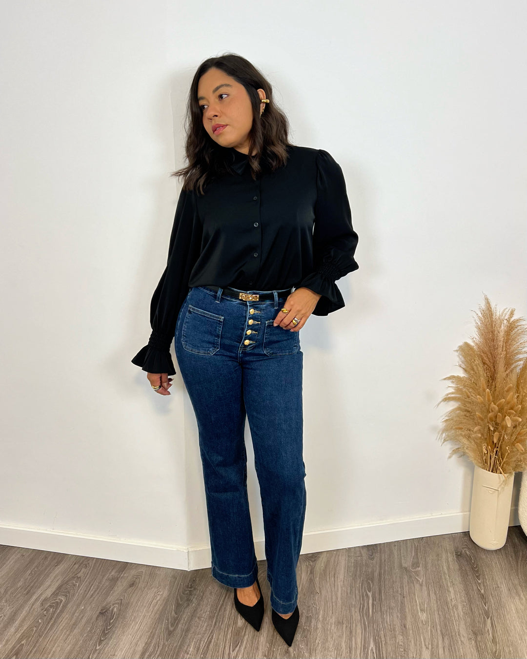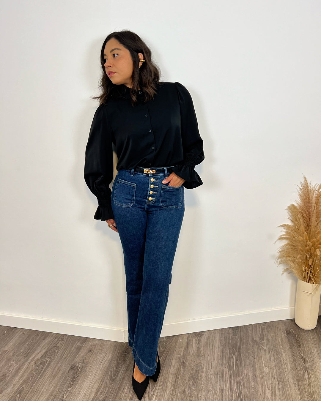 "Experimenta el estilo y la comodidad con Jeans Lily. Este pantalón vaquero presenta un diseño elástico y campana, que se adapta a tu cuerpo para un ajuste perfecto. Además, su corte grande te brinda libertad de movimiento mientras te mantiene a la moda."