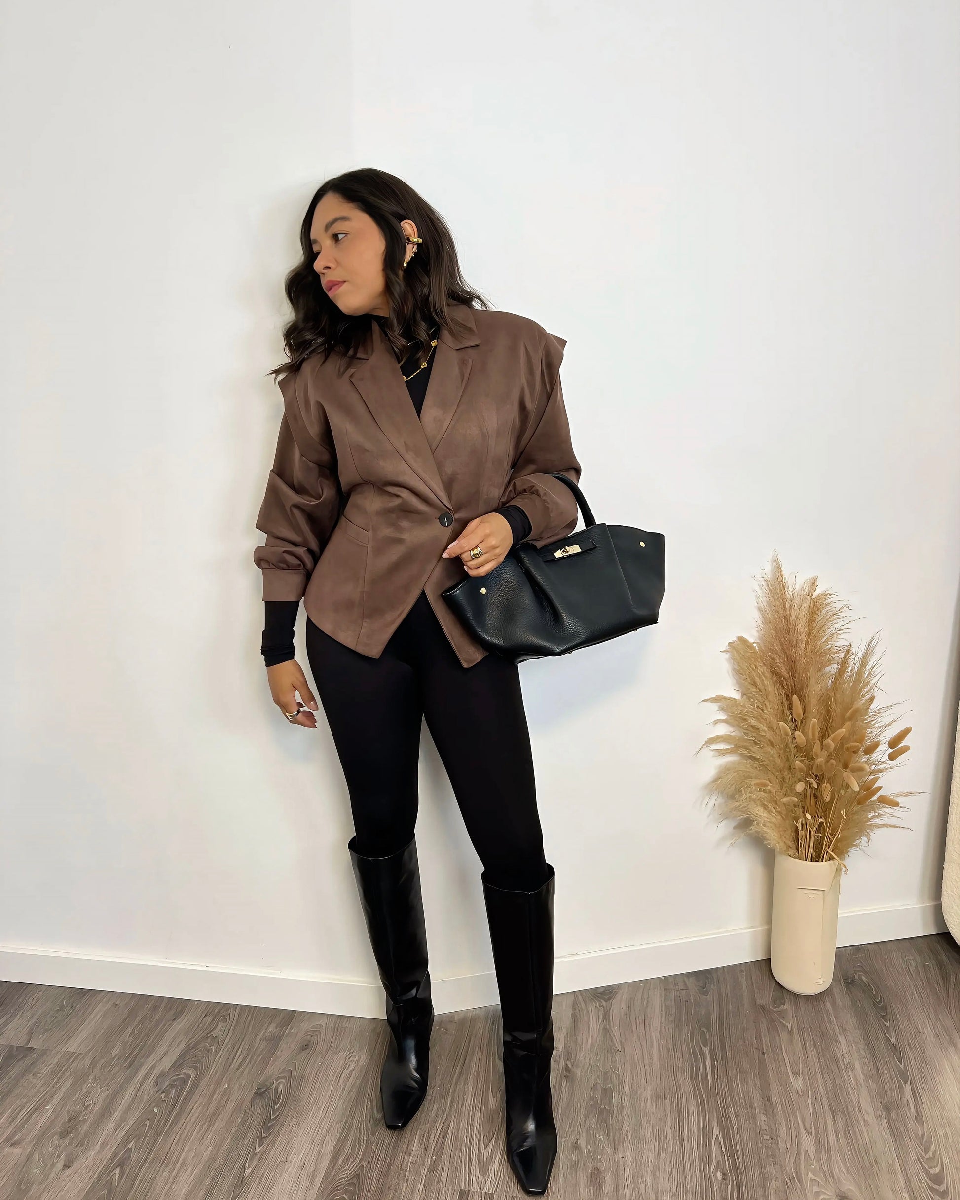 El mono Khloe negro con hombreras es una prenda ajustada de tejido de licra que realzará tu figura y te dará un look elegante. Diseñado con hombreras, este mono te otorga un toque adicional de sofisticación mientras te mantiene cómoda y segura. Perfecto para cualquier ocasión, ¡lucirás espectacular con este mono Khloe!