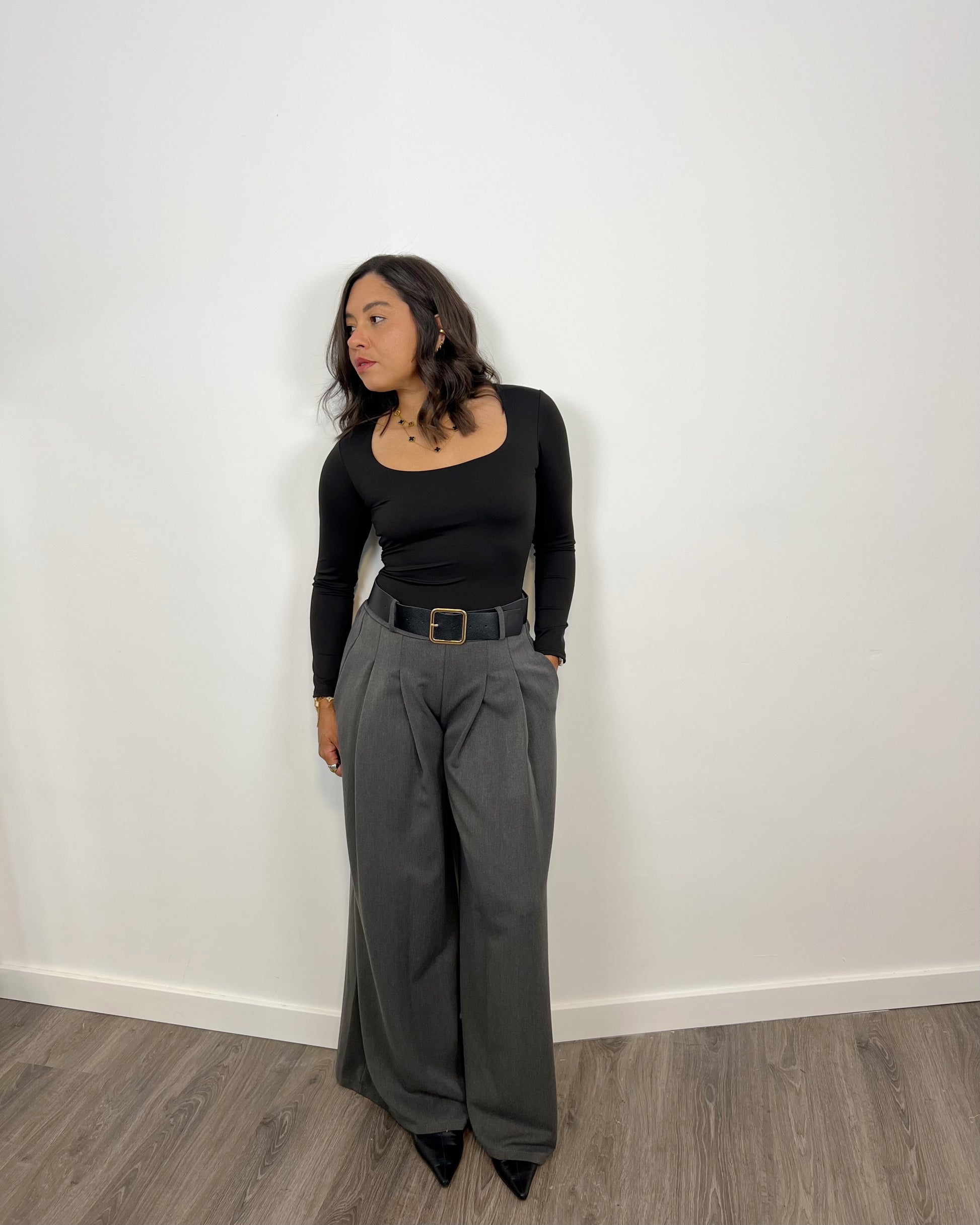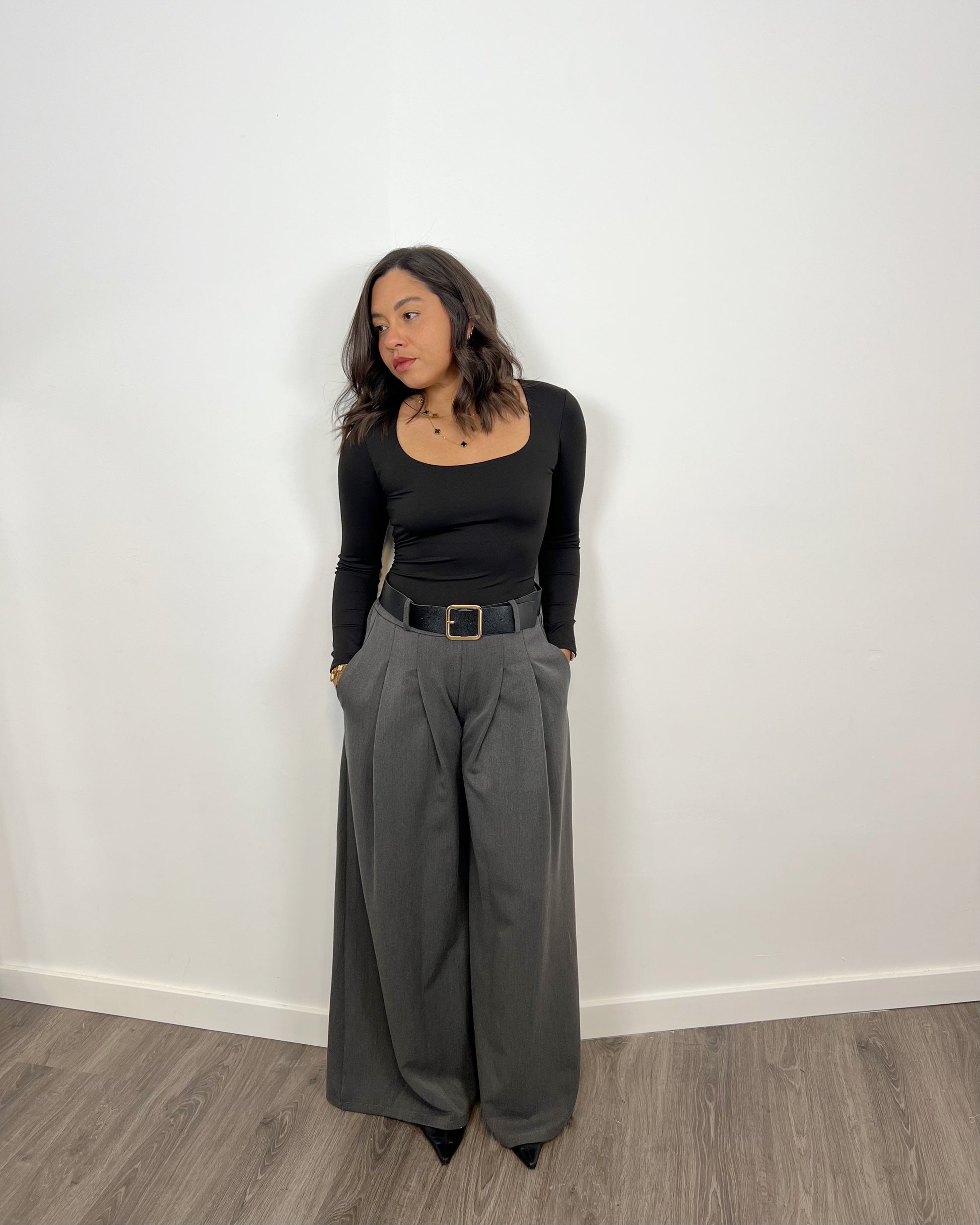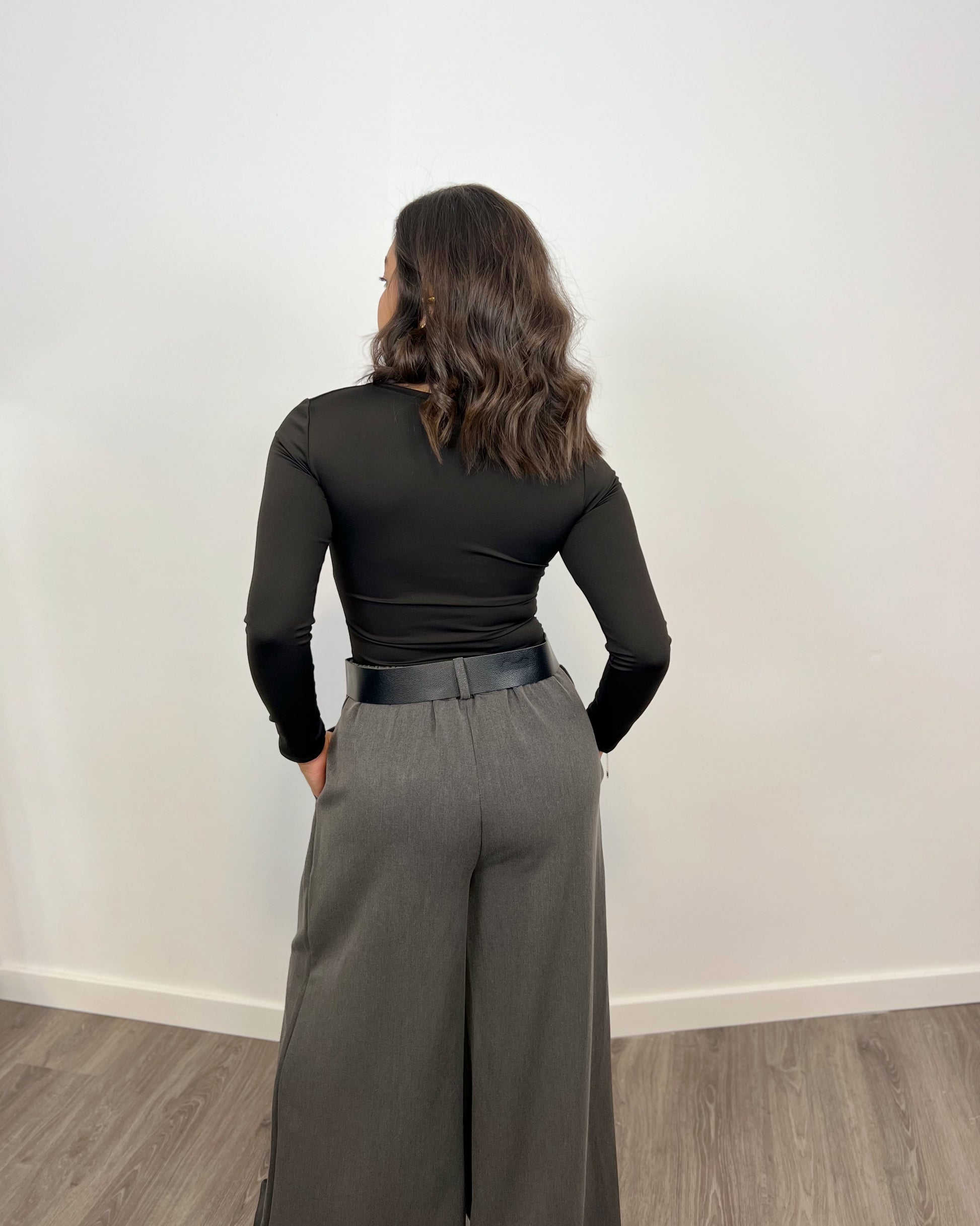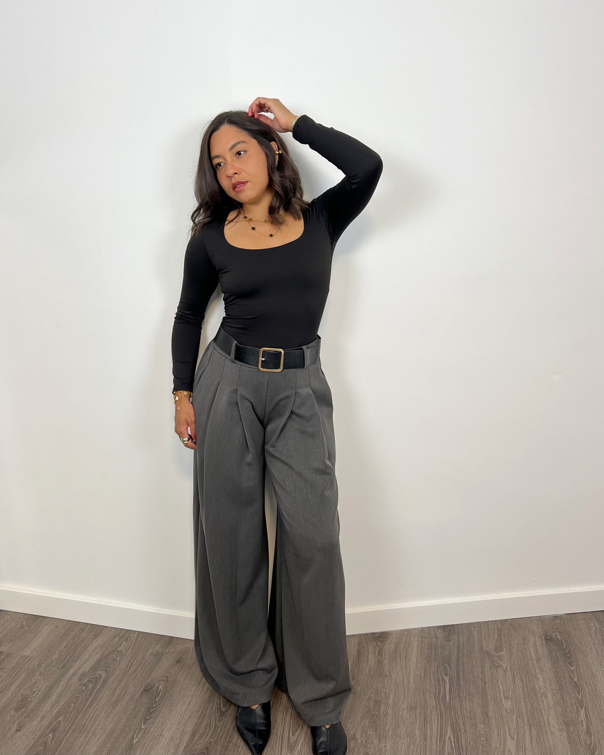Con un corte ancho y pinzas, el Palazzo Lua gris es una opción elegante y sofisticada. Su diseño ofrece un ajuste favorecedor y suave, mientras que su estilo clásico y moderno lo hacen versátil para usar en cualquier ocasión. La combinación perfecta de comodidad y estilo.