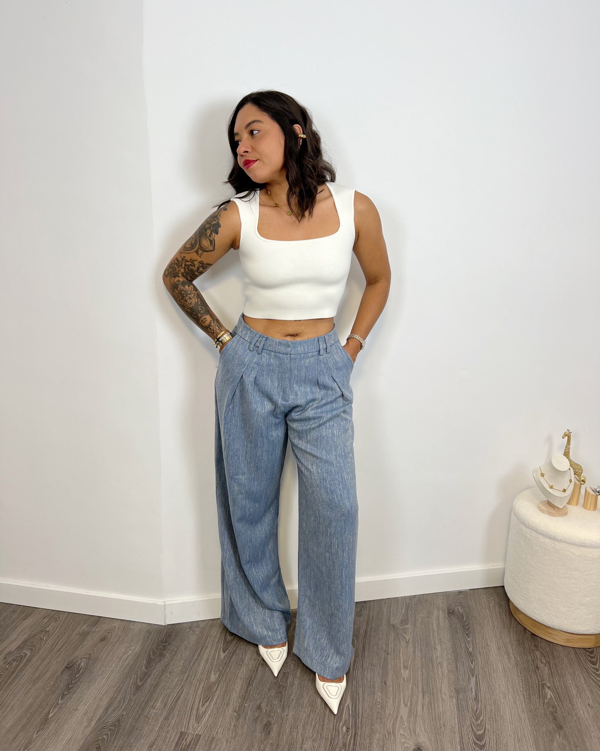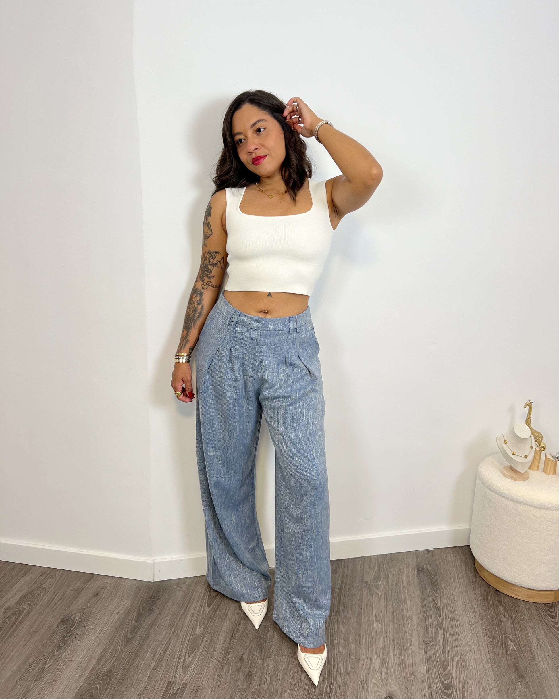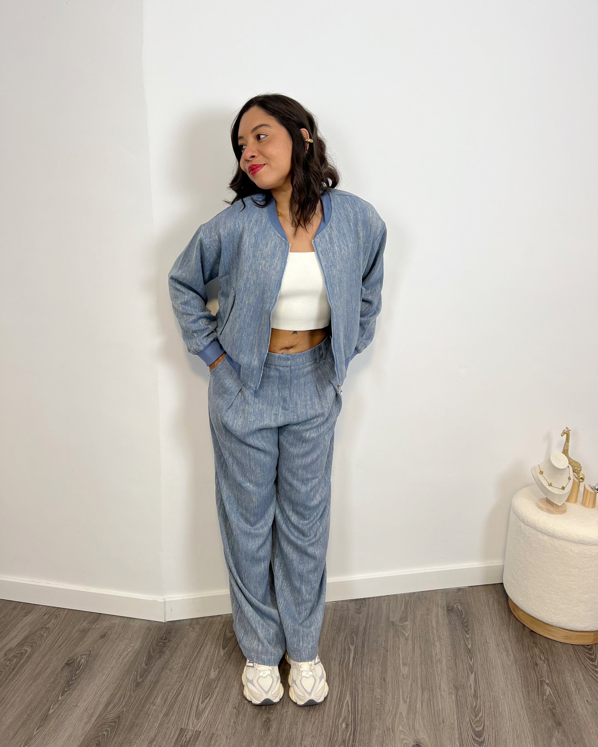 El Pantalón Océano en color azul con raspeado plateado te ofrece una calidad alta, gracias a su composición de algodón y viscosa. Ideal para lucir elegante y casual a la vez. Domina tu estilo con este pantalón de primera calidad.