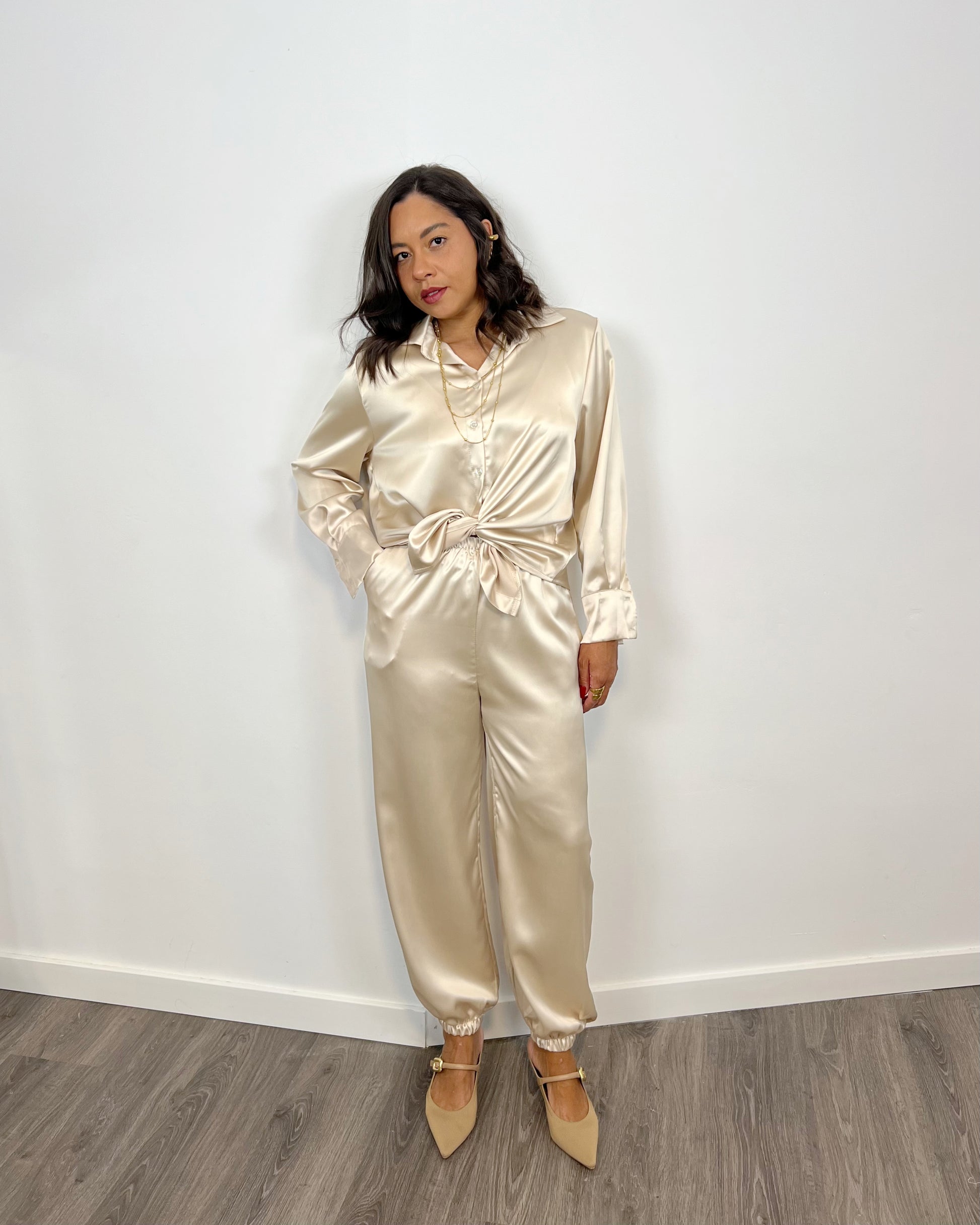 El Pantalón Paris Beige es una prenda de vestir elegante y sofisticada, confeccionada en satinado para brindar comodidad y estilo. Su diseño en color beige lo hace versátil y fácil de combinar, perfecto para lucir en ocasiones formales o informales. ¡Añade este pantalón a tu guardarropa para siempre estar a la moda!