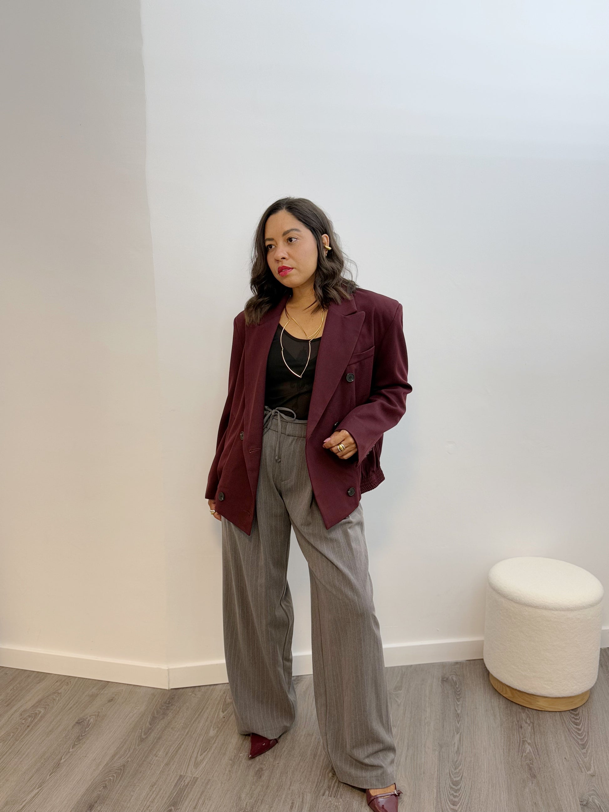 Dale un toque de sofisticación con nuestro pantalón raya diplomática gris, perfecto para quienes disfrutan combinar elegancia y estilo con un toque divertido. Su corte impecable realza tu figura mientras las líneas clásicas le dan un aire de lujo discreto. Ideal para transformar un look formal en algo único y lleno de personalidad. ¡Atrévete a destacar con cada paso!