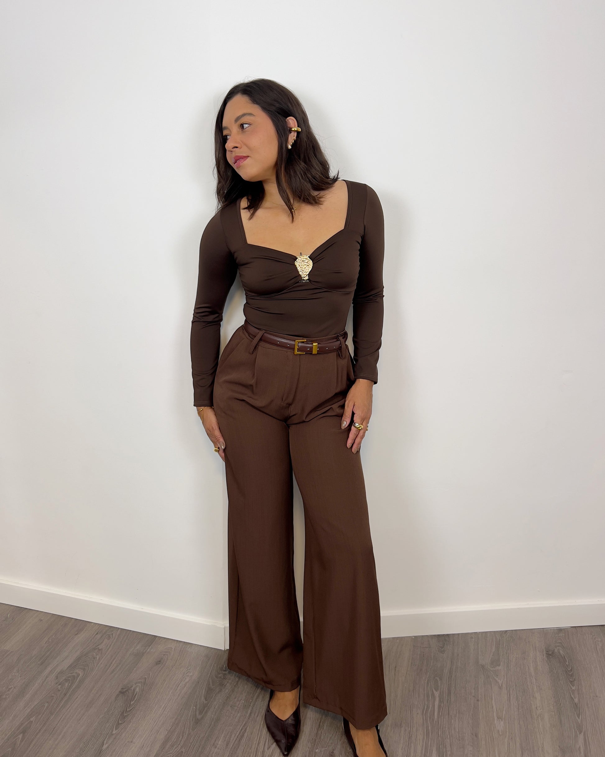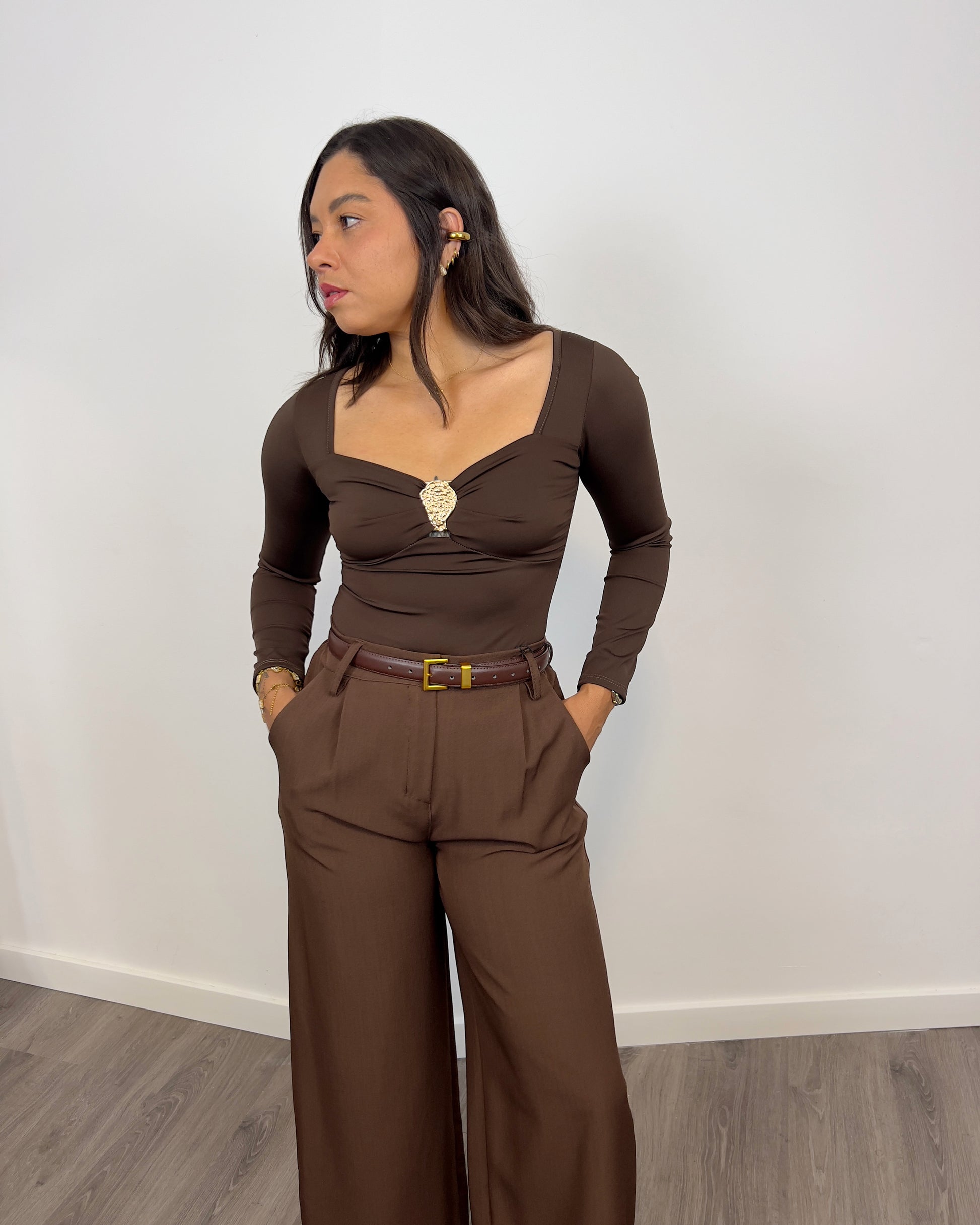 Este top joya marrón hecho de tejido de licra, es elegante y se ajusta perfectamente a tu cuerpo. Disfruta de comodidad y estilo al mismo tiempo gracias a su diseño único. El tejido licra ofrece un ajuste ideal mientras que el detalle de joya añade un toque de sofisticación a tu look.